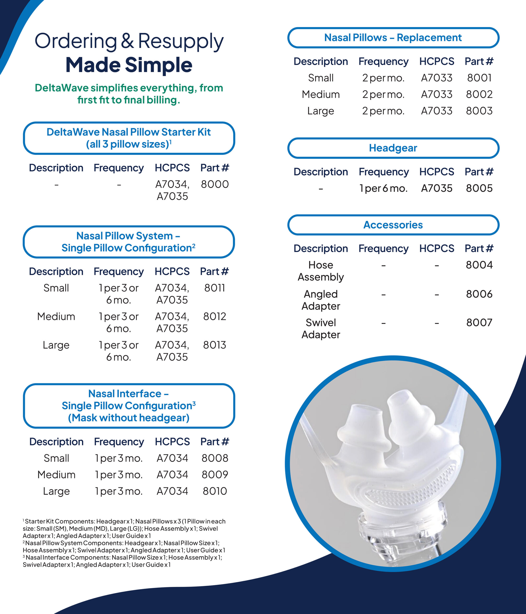 Details and specs for the DeltaWave Nasal Pillow System